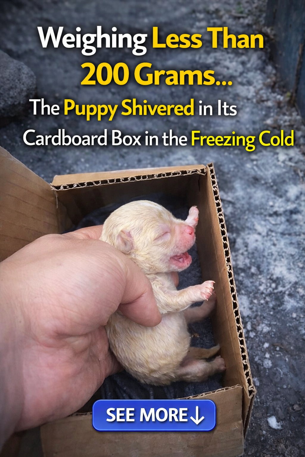 Weighing less than 200 grams, the puppy shivered in its cardboard box in the freezing cold - YouTube
