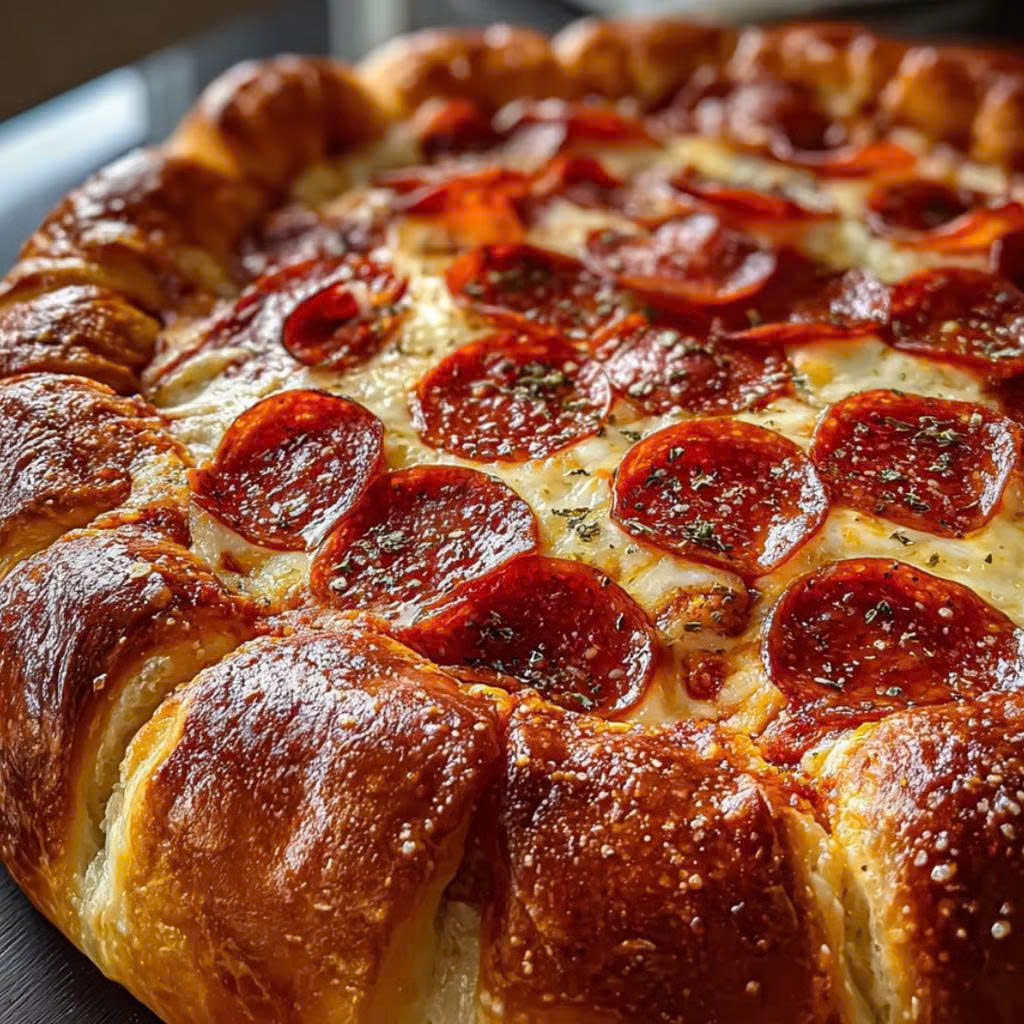 A golden, cheese-filled crust takes this pepperoni pizza to new heights. String cheese is tucked into fresh dough, then crowned with a bright tomato sauce, mozzarella, and classic pepperoni. Olive oil brushed over the crust brings extra flavor, especially with a sprinkle of optional garlic or Italian seasoning. Cook until bubbly and deeply golden, then slice and enjoy hot. Pair it with a crisp salad or your favorite sides for a memorable meal the whole table will love. This is an ideal option for family gatherings or a cozy night in, even better than delivery.