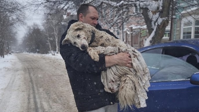 A Fateful Encounter and a Warm Embrace Kulik was found lying alone on a cold road. When he was rescued and lifted, the little dog leaned his head against the rescuer’s shoulder and cried like a baby, shedding all the fear and pain he had endured for so long. Despite the trauma, Kulik showed his gentleness by faintly wagging his tail whenever he heard soothing words of love.