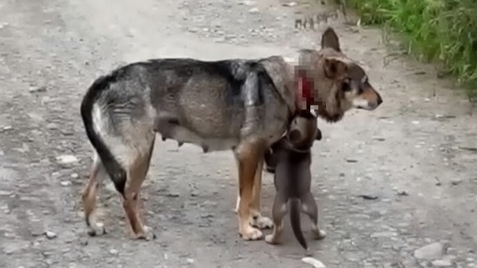 The Tightening Wire and Loneliness Weeks ago, the mother dog was intentionally trapped by someone who tied a steel wire tightly around her neck. The harder she tried to run away to escape, the deeper the wire sliced into her flesh, creating deep and agonizing open wounds. Throughout that period of neglect and pain, no one helped; only her puppy stayed by her side, constantly licking around the wounds to comfort her.