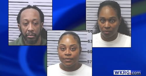 Mugshots of Glennie McGee (top-left), Echandza Maxie (top-right), and Exavieria Maxie (bottom). (Courtesy of the Mobile County Sheriff’s Office)