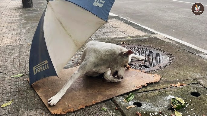 Snow didn’t cry out for help. He just lay there, curled up like a forgotten shadow on the frozen pavement. His tiny body shook uncontrollably, every breath shallow and uneven, as if breathing itself required more strength than he had left. While the world rushed by, Snow remained still, pressing himself against the concrete as if trying to disappear from the world that had abandoned him.