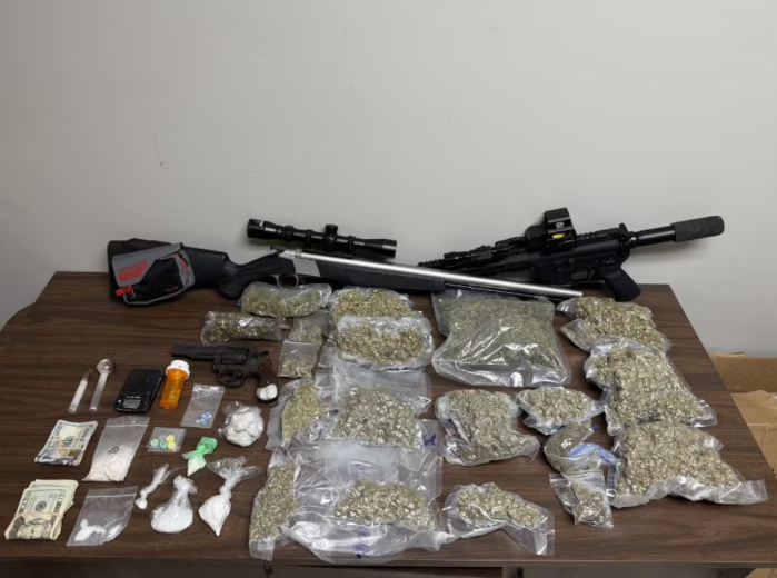 During the search, detectives found more than 10 grams of methamphetamine, 15 grams of cocaine, three pounds of marijuana and three firearms.