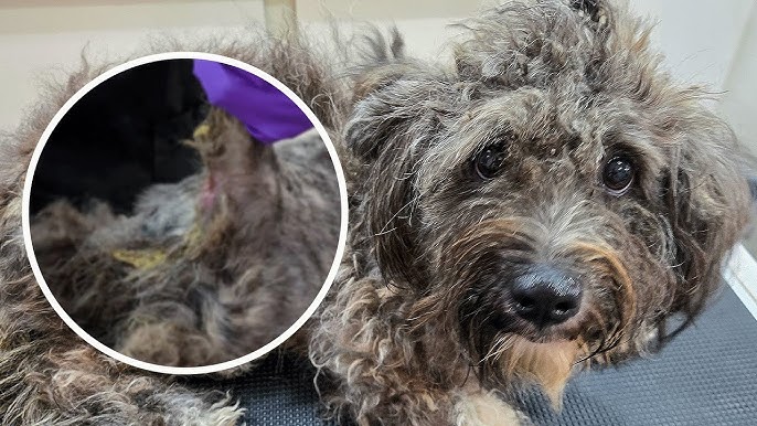 When the dog was first discovered, it was almost impossible to identify its breed or even its shape. Its fur had grown into thick, heavy “dreadlocks” that were matted with filth and parasites. This “armor” of hair was so dense that it restricted the dog’s movement and made basic functions like eating and excreting a painful struggle. It was a visible sign of years spent in total isolation and abandonment.